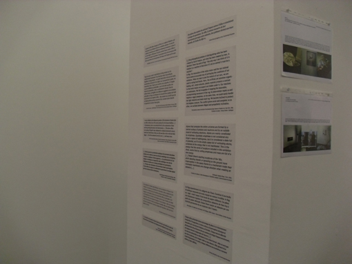 Installation de communiqués de presse recueillis et transformés par Joël Riff